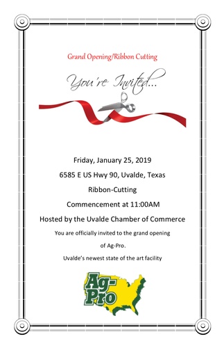 You are offically invited to the grand opening of Ag-Pro.